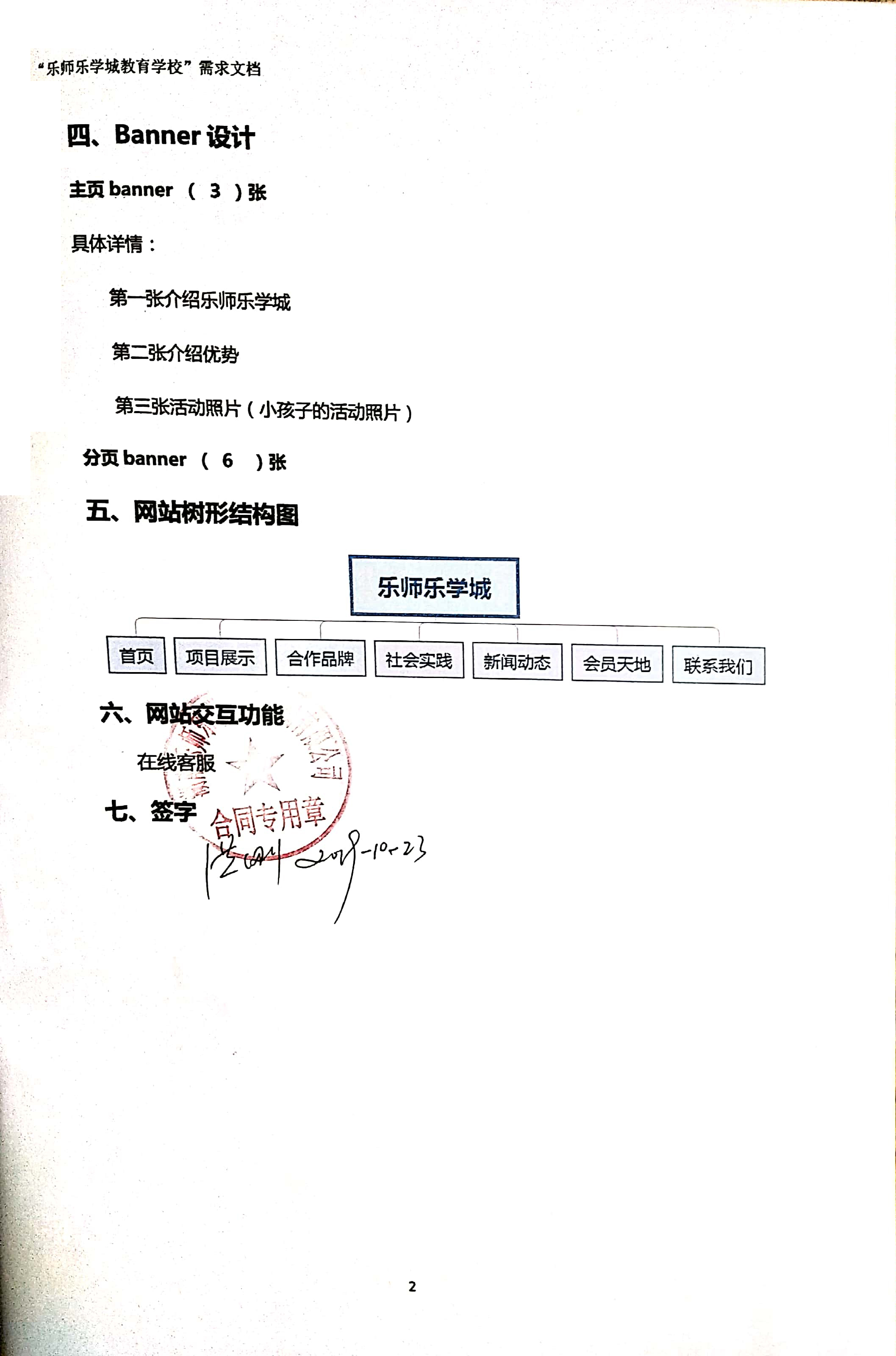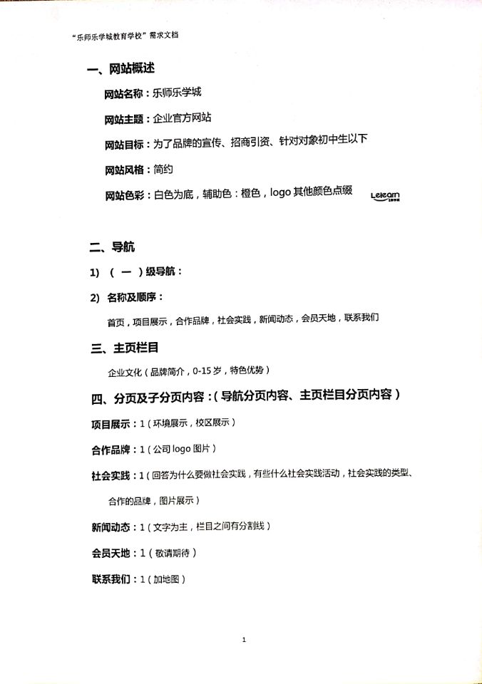 “湖南乐师乐学教育咨询有限公司”网站建设 需求文档 (扫描版)全组