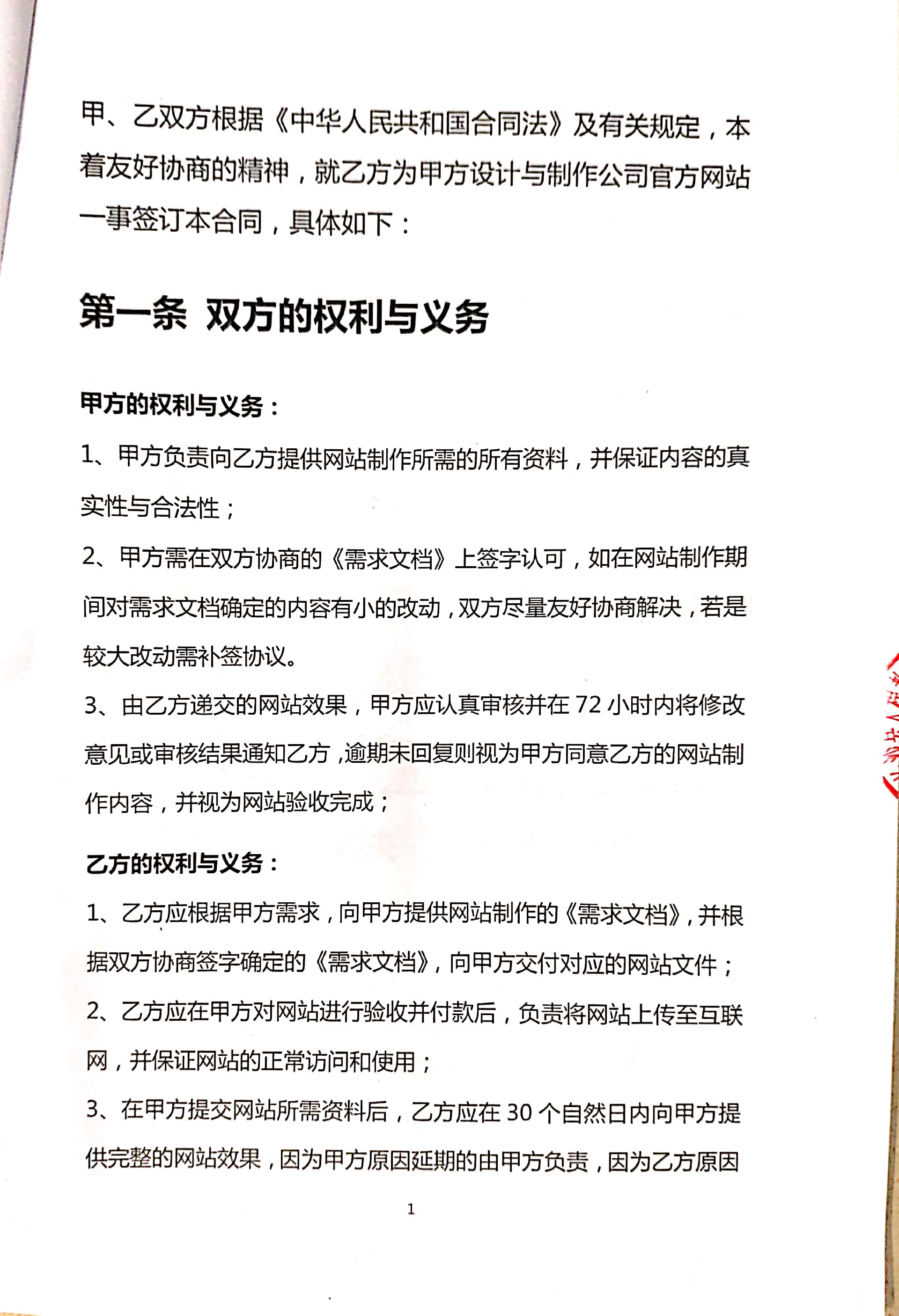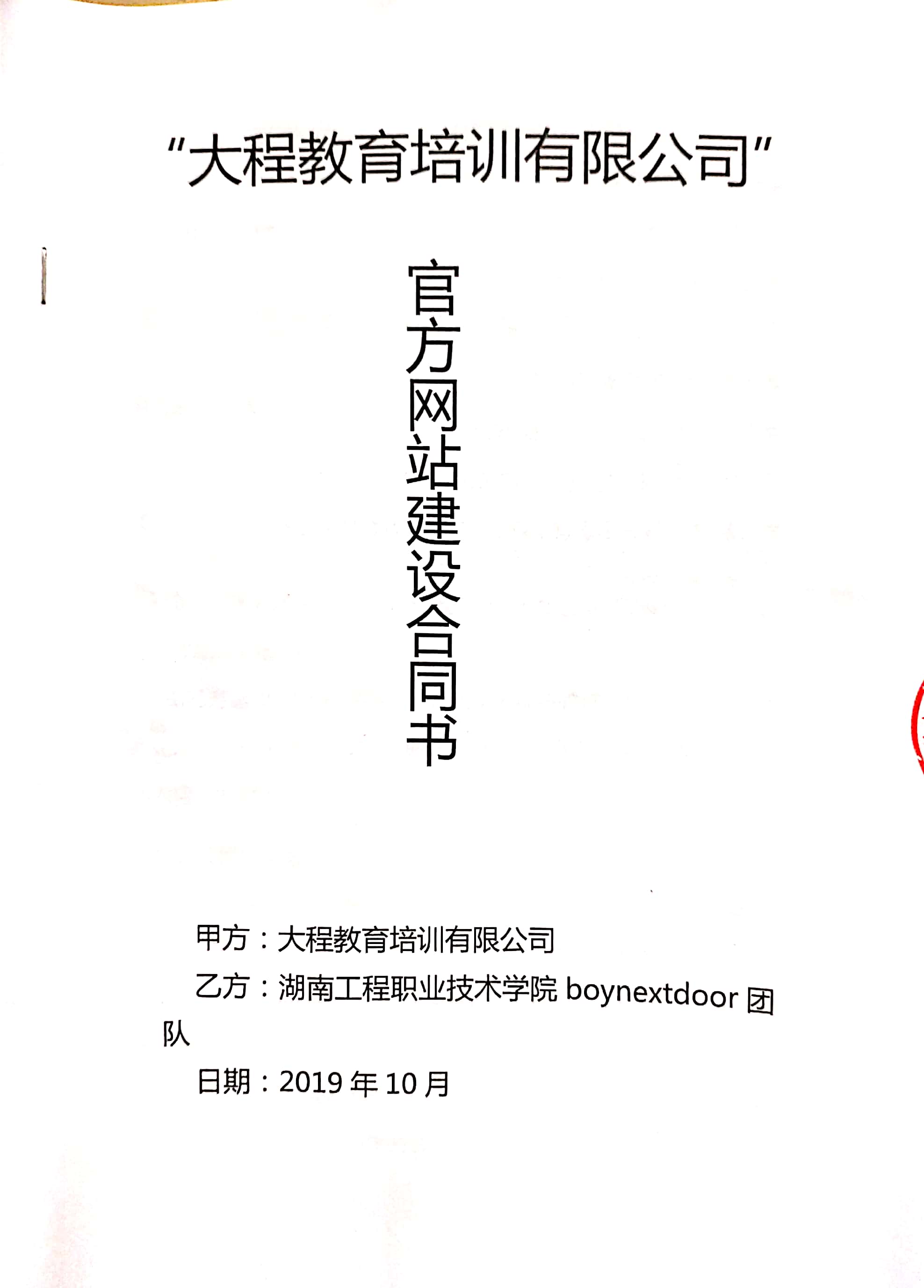 “大程教育培训有限公司” 官方网站建设合同书扫描版 杨彪