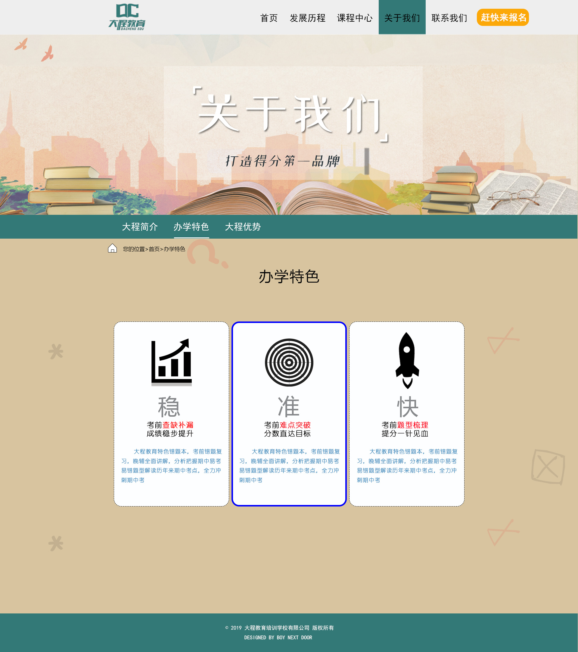 “大程教育培训有限公司” 关于我们/办学特色分页设计图 杨彪