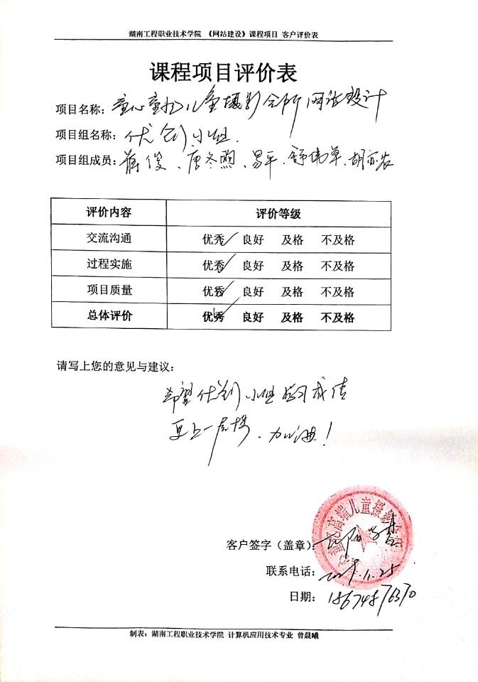 童心童忆高端儿童摄影会所 课程项目评价表扫描版 全组
