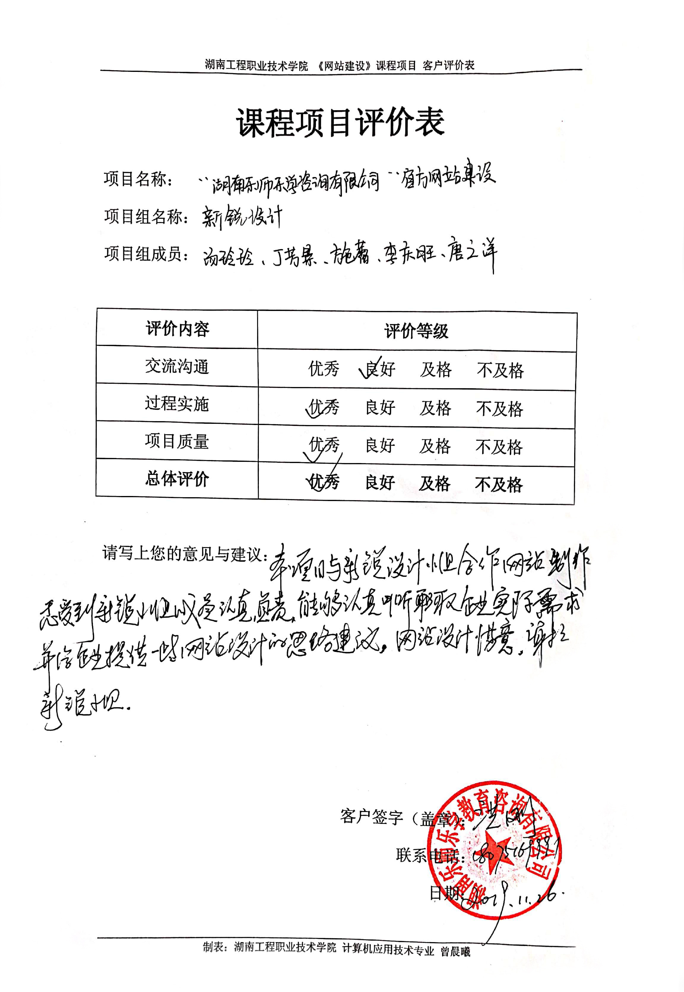 “湖南乐师乐学教育咨询有限公司” 官方网站项目客户评价表 扫描版