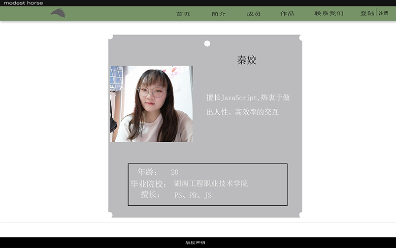 灰马团队网站 成员秦姣分页 (设计稿 初稿) 秦姣