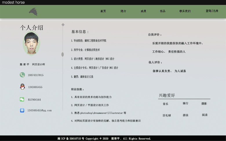 灰马团队网站 个人介绍分页(设计稿 初稿)梁荣平