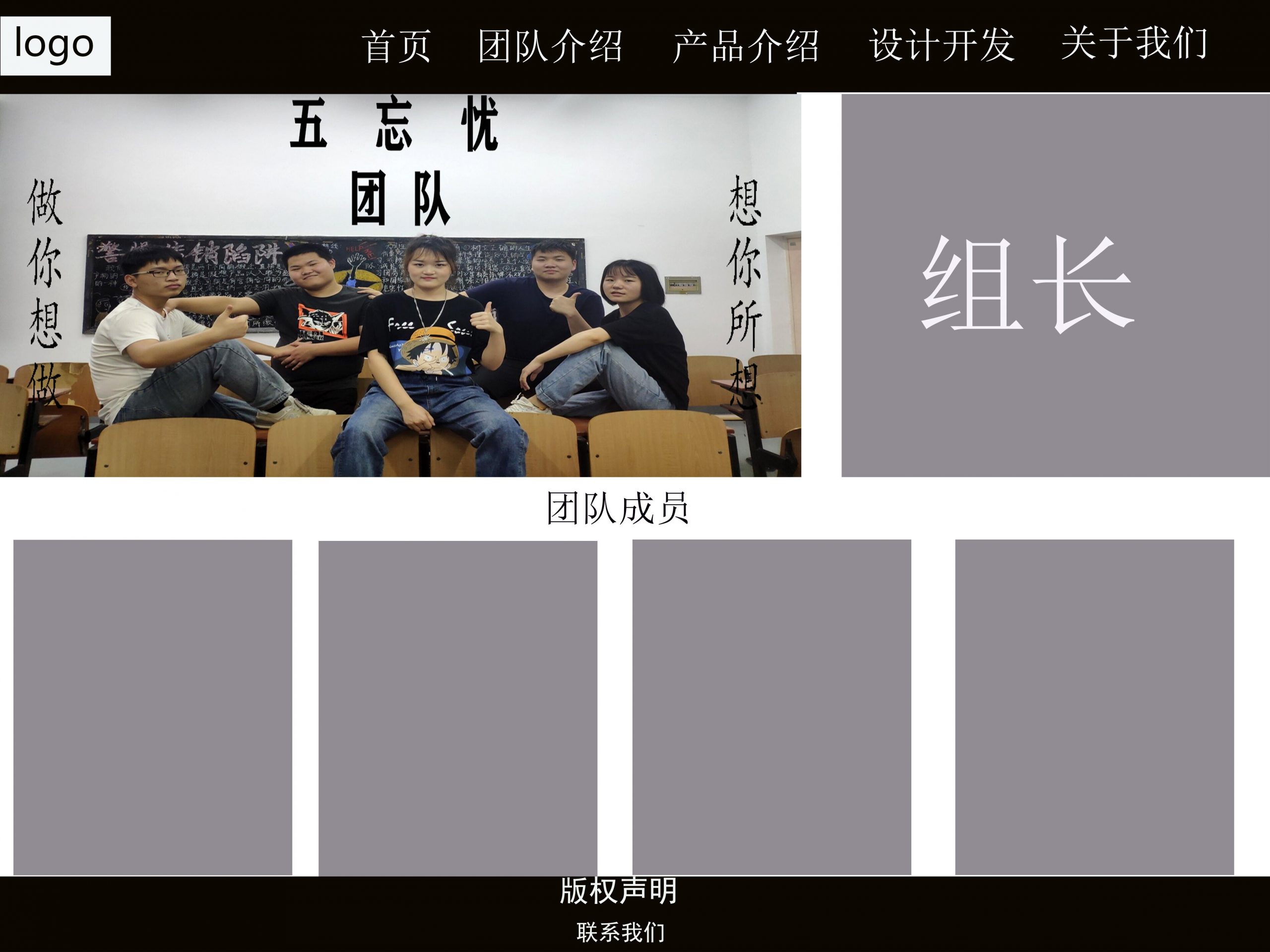 五忘忧团队网站 首页设计初稿 杨洋