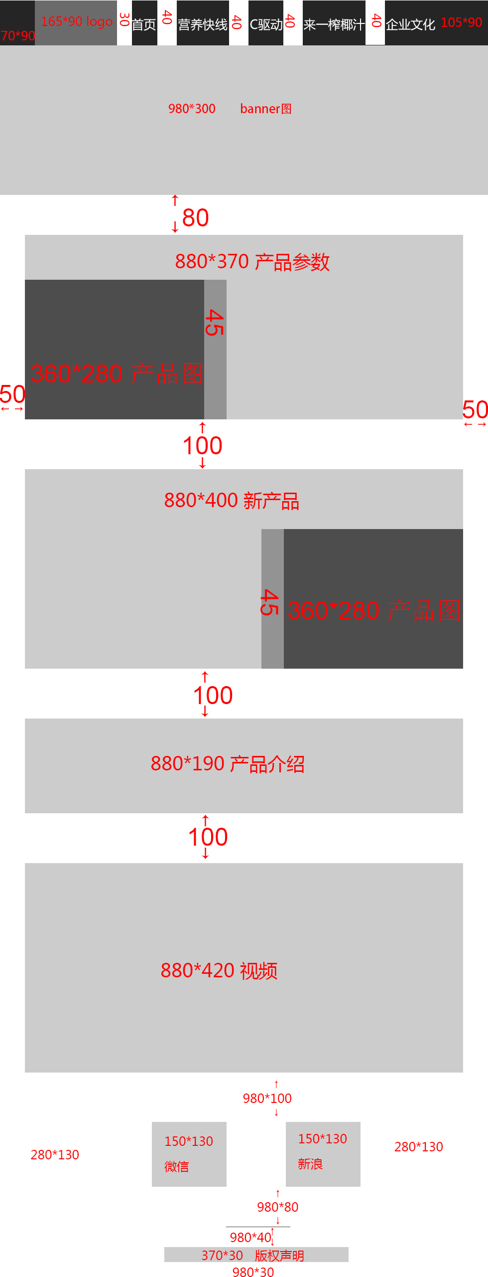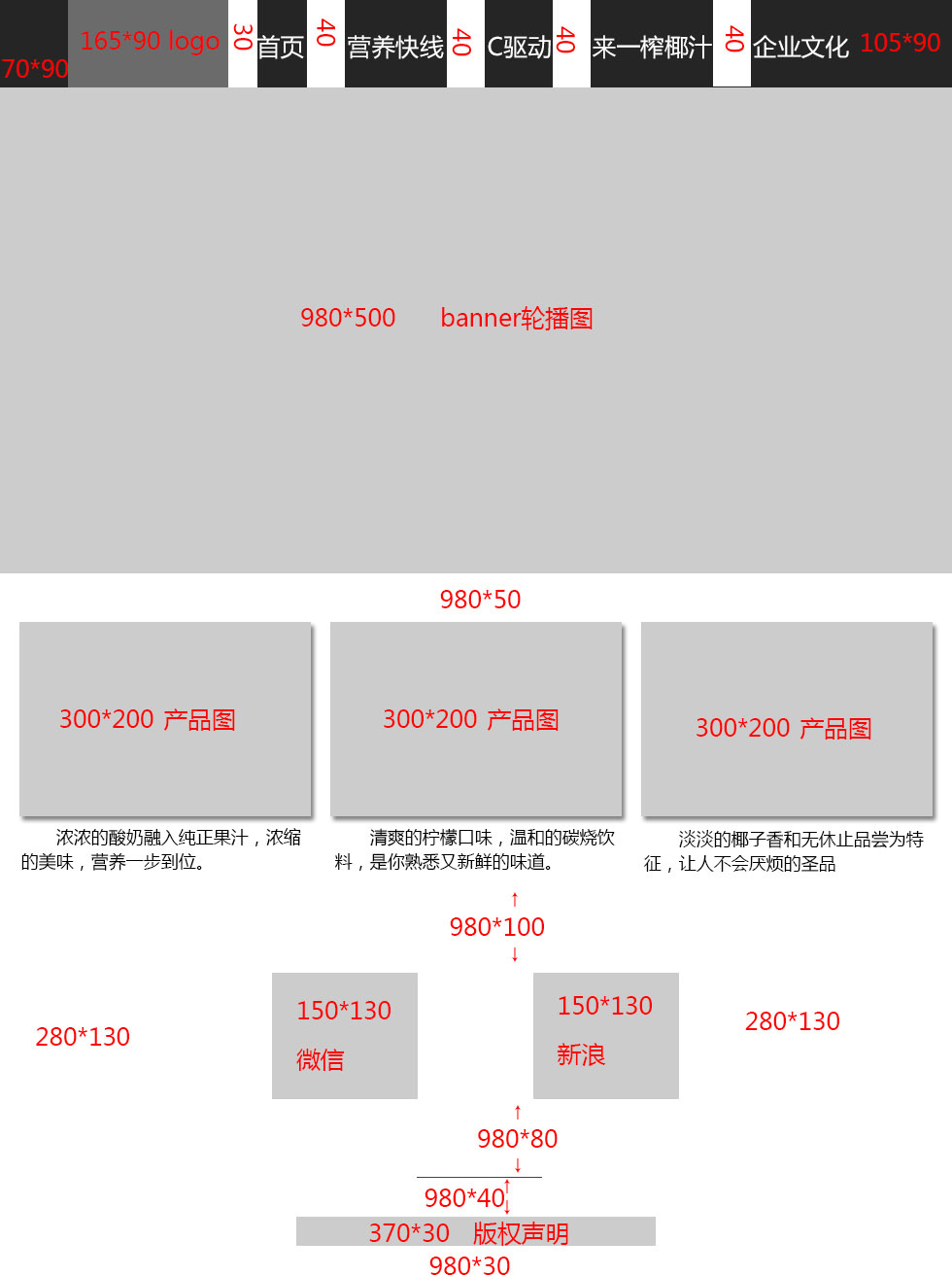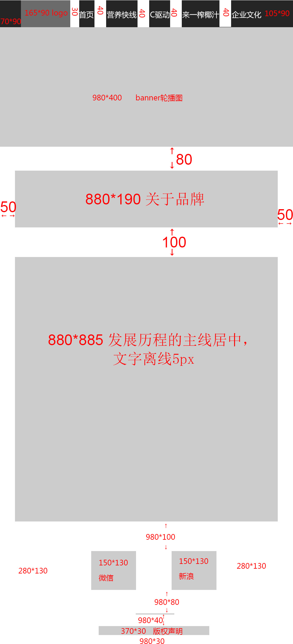 项目二 娃哈哈网站整体尺寸图 周永