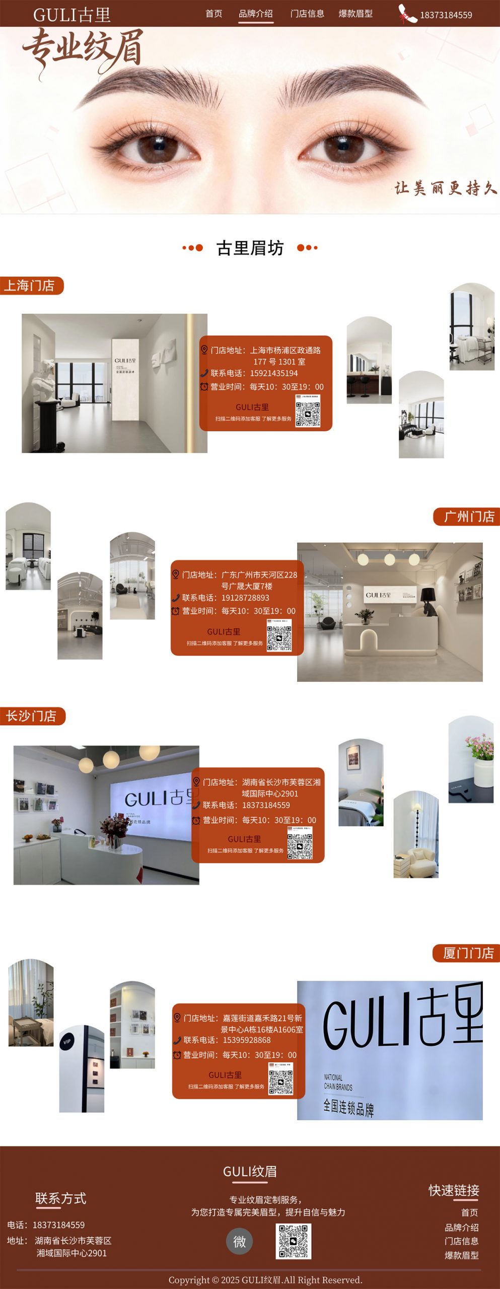 古里专业半永久纹眉连锁品牌 门店信息分页设计图 张虑慧