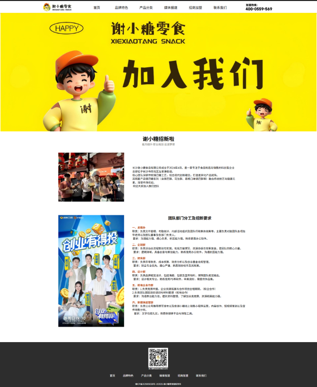 长沙谢小糖食品全媒体定制官网 加入我们分页设计图 雷辉
