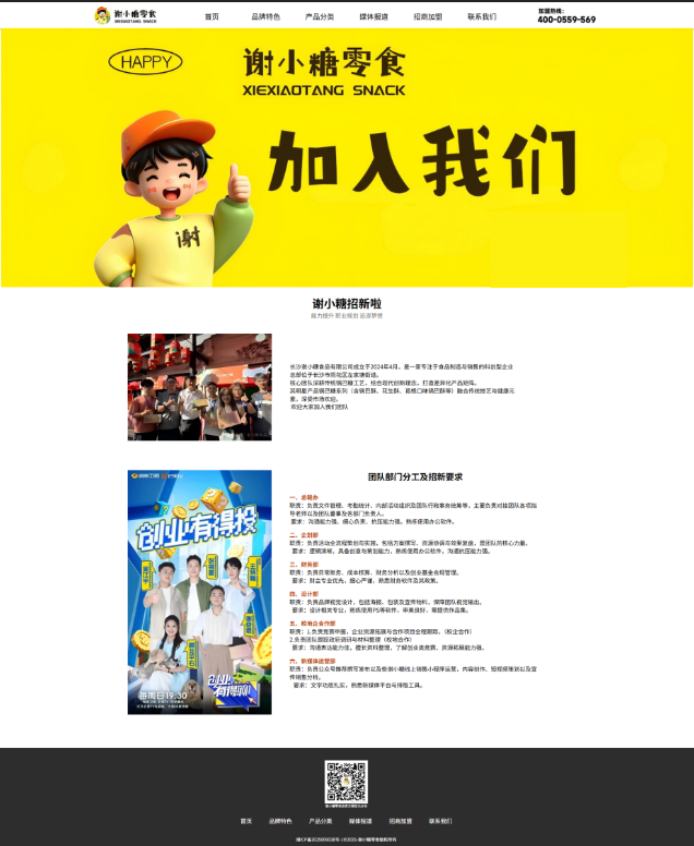 长沙谢小糖食品全媒体定制官网 加入我们分页设计图 雷辉