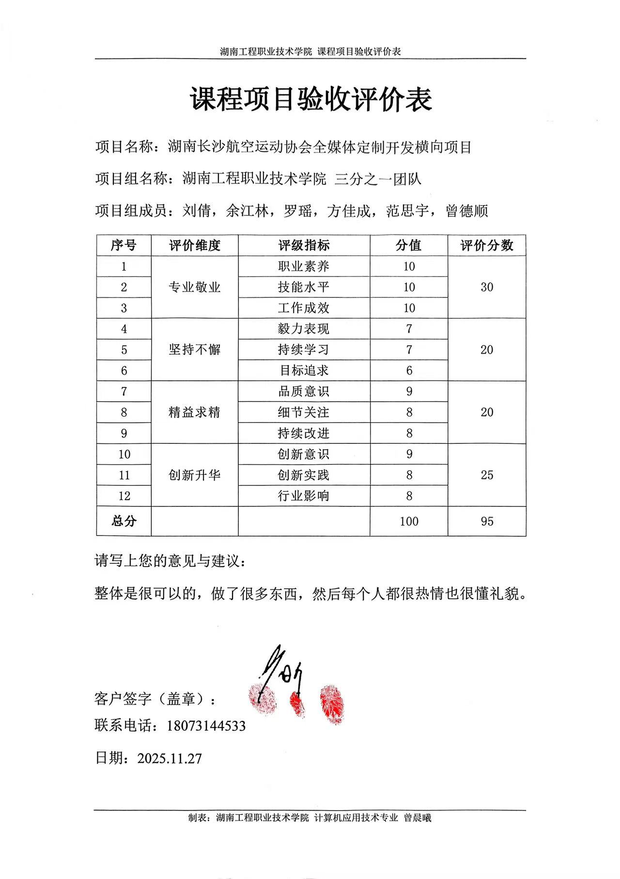 长沙航空运动协会全媒体定制与开发 评价表 全组