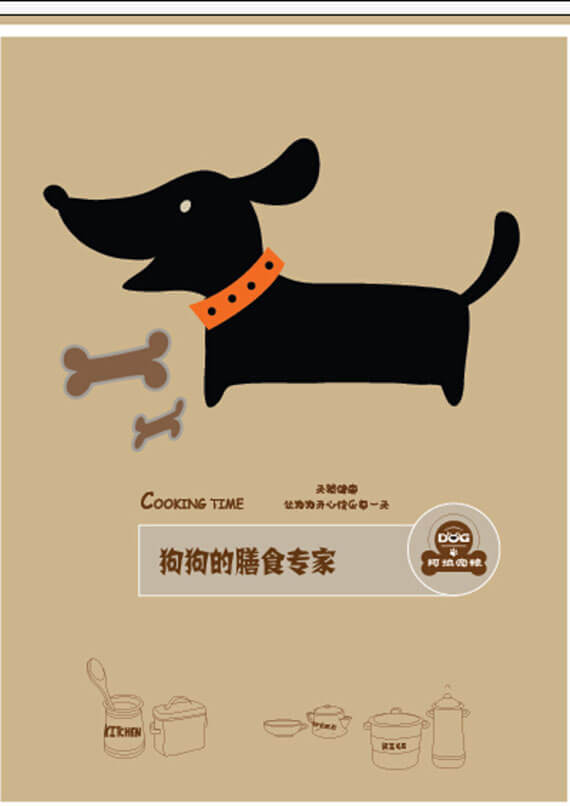 这是一个宠物狗粮的包装设计。创作理念来源于狗狗也需要像人类一样合理膳食,包装简洁但突出了产品的功能与作用。